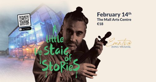 A stack of tales from one of Ireland’s great modern bardic artists. Drawing on folklore, mythology and personal yarns, Aindrias de Staic delivers classic bardic storytelling with rhythm, drama and linguistic flair, blending explosive energy, fiddle-playing and wit to leave audiences amused, bewildered and creatively ignited.